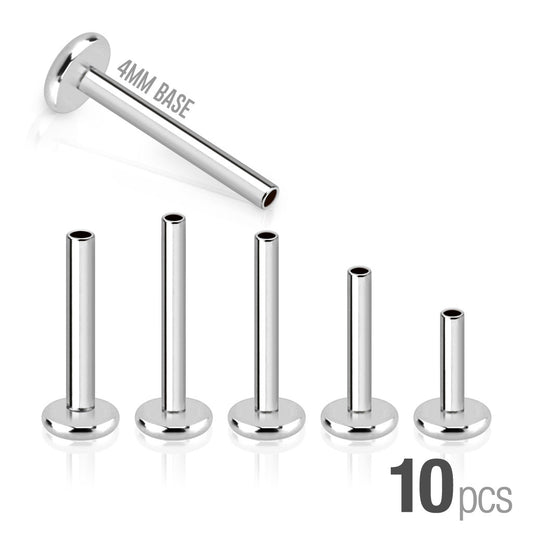 10pk Replacement 316L Surgical Steel Internally Threaded Labret Post Bars