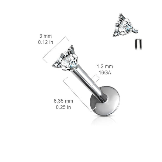1pc Gem Triangle 16g 8mm Labret Steel Monroe Stud Lip Ring