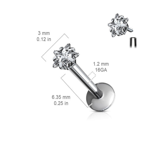 10pcs Clear Prong Set Star CZ Gem 16g Internally Threaded Labrets