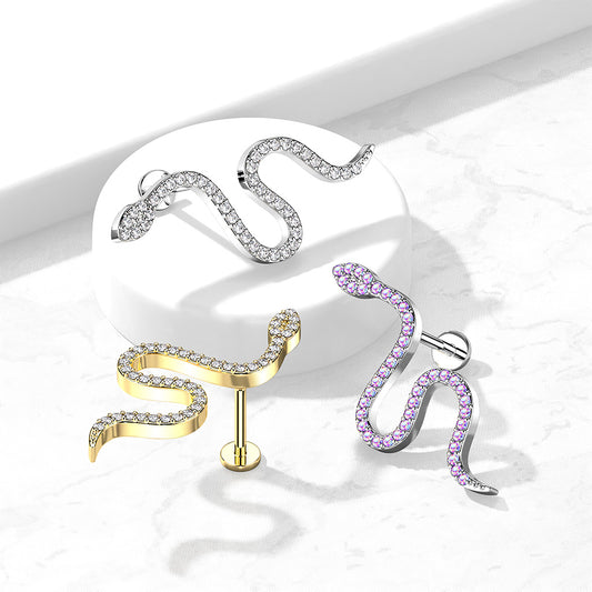 1pc CZ Paved Snake 16g Labret Internally Threaded Steel Monroe Tragus Helix