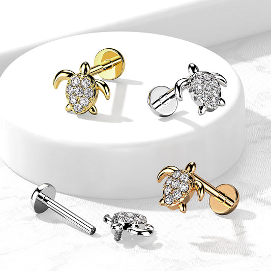 1pc CZ Paved Turtle 16g Labret Internally Threaded Steel Monroe Tragus Helix