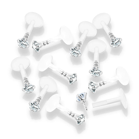10pcs Clear Prong Set Heart CZ Gem 16g Internally Threaded Labrets