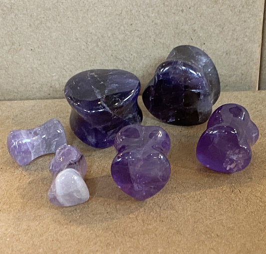PAIR Heart Shaped Amethyst Stone Plugs Gauges Amythest Tunnels Body Jewelry