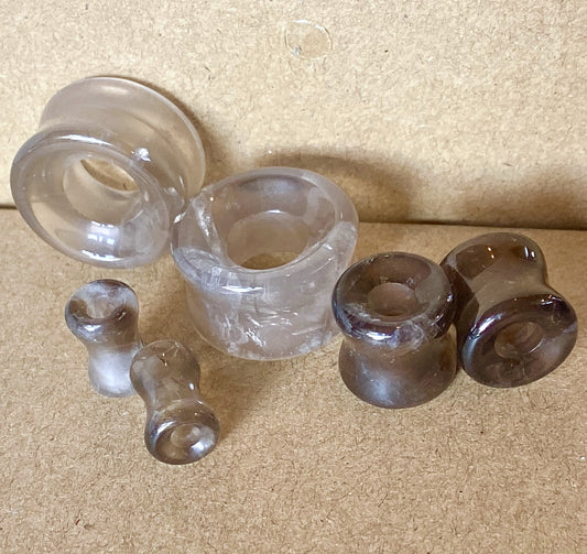 PAIR Smoky Quartz Stone Tunnels Organic Gauges Plugs Body Jewelry