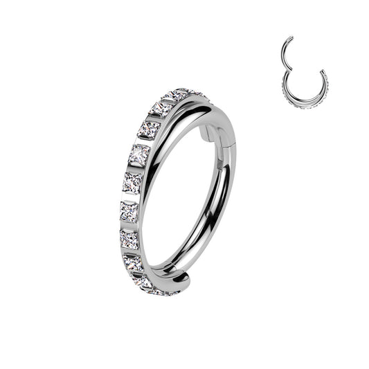 1pc CNC & Bezel Gems Hinged Segment Ring Septum Hoop Implant Grade Titanium