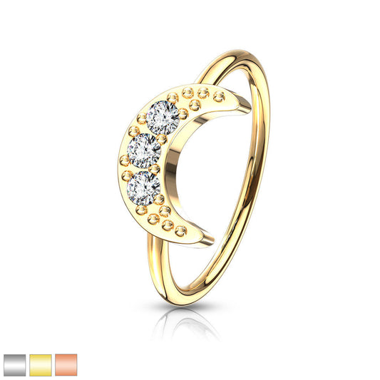 1pc Bendable Hoop / Cartilage Ring CZ Gem Crescent Moon for Nose, Rook, Daith