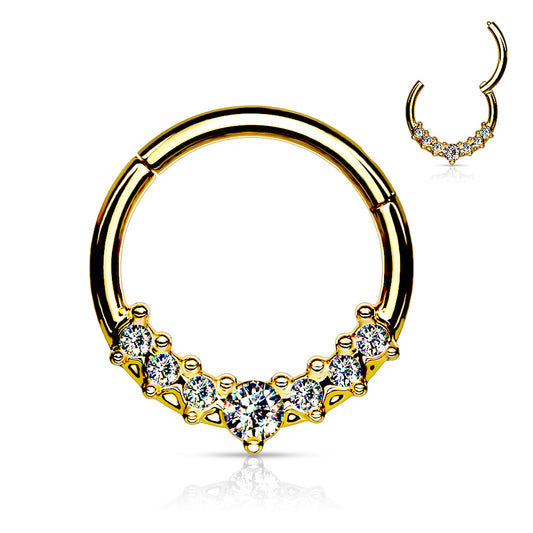 1pc Lined CZ Gem Fan Hinged Segment Ring 16g Septum Clicker Surgical Steel
