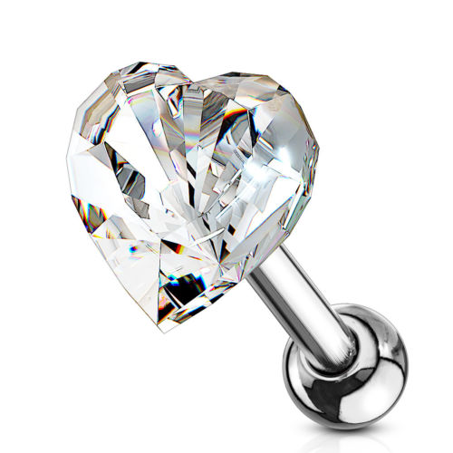 1pc Heart Crystal Tragus Ring 16g 1/4"