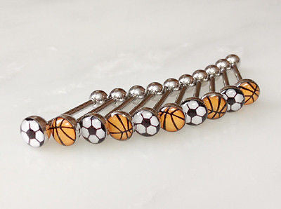 10pcs Soccer Ball / Basketball Dome Logo Tongue Rings