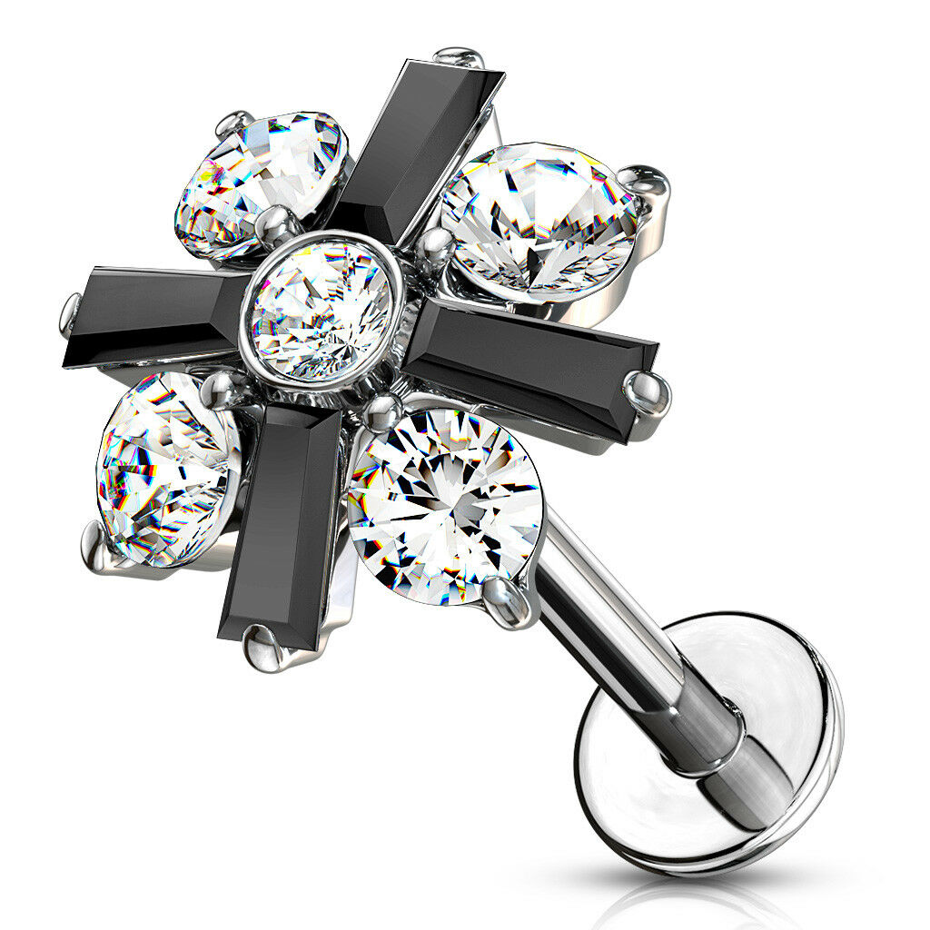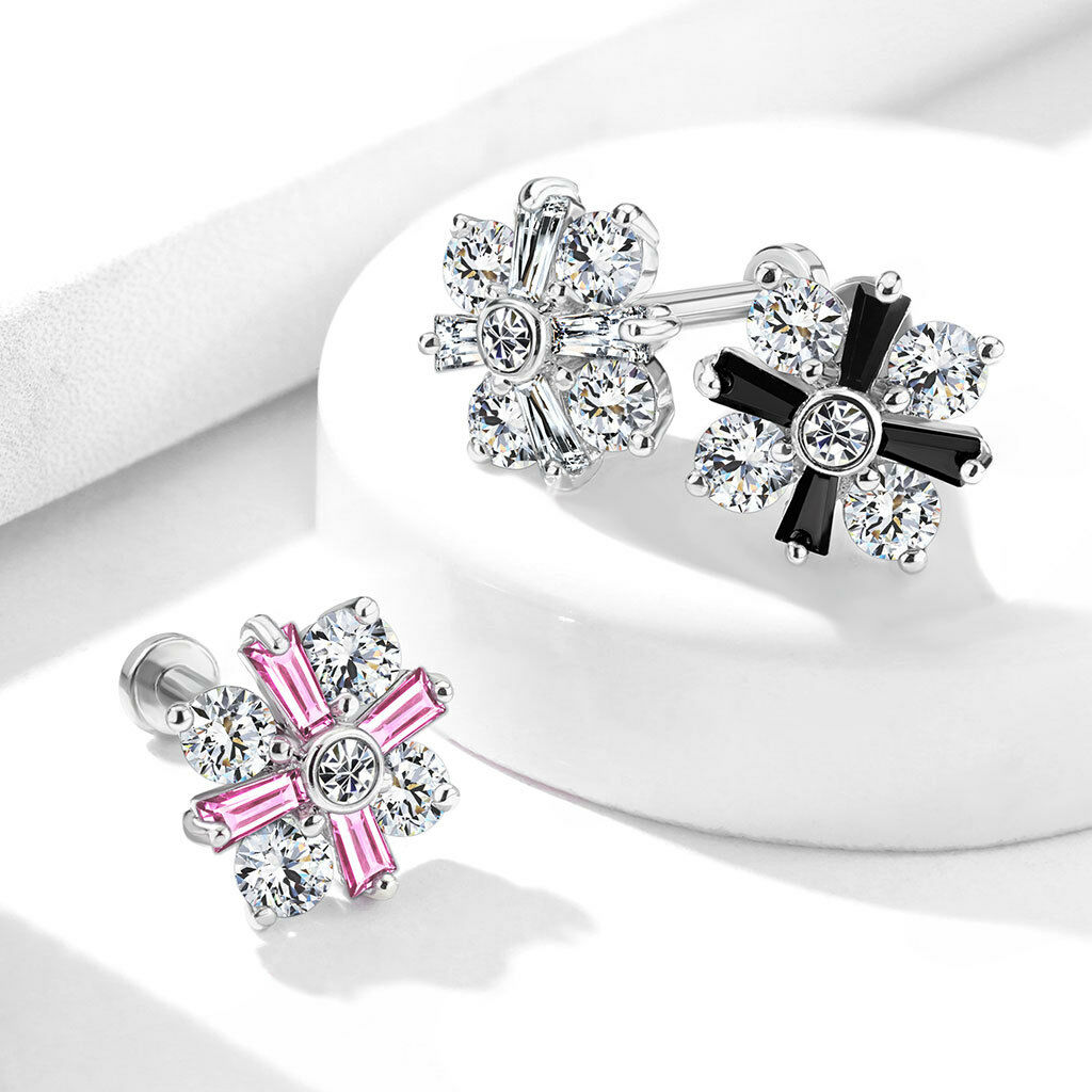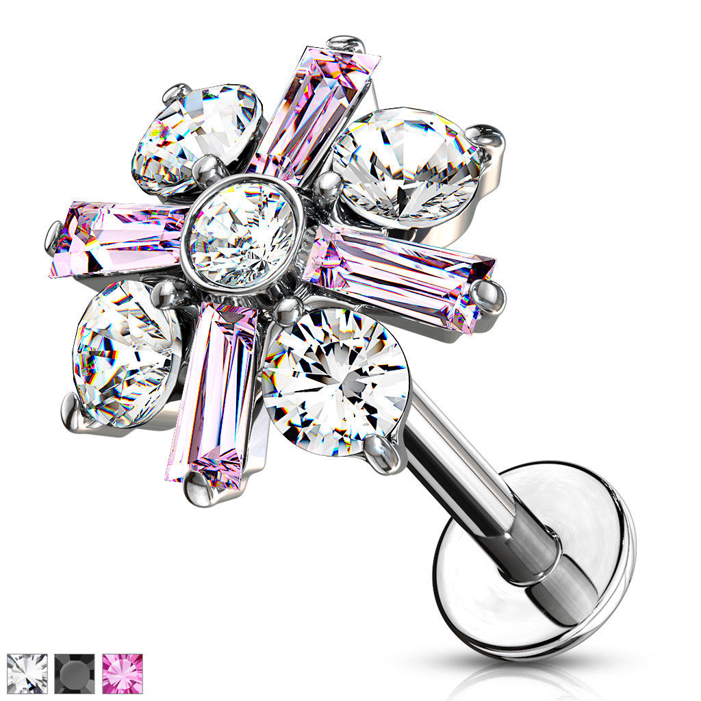 1pc Baguette & Round Crystals Labret 16g Internally Threaded Steel Helix Tragus