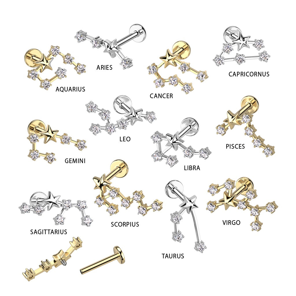 1pc Constellation 16g 8mm Labret Internally Threaded Steel Monroe