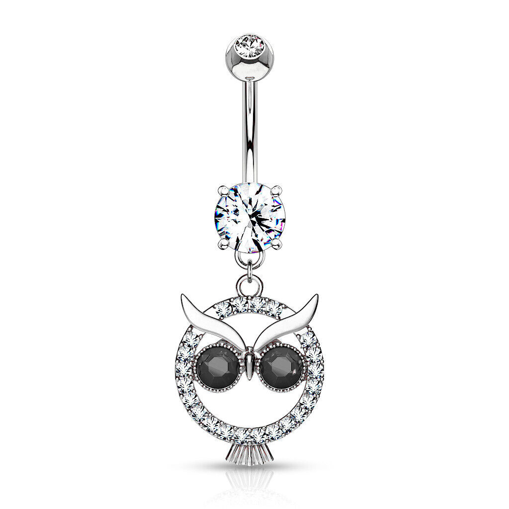 1pc Crystal Paved Owl Belly Ring Pierced Navel Naval Piercing Body Jewelry