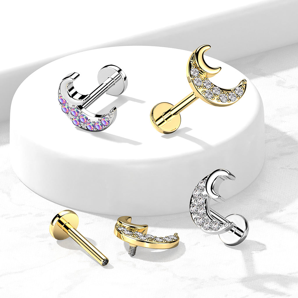 1pc CZ Crescent Moon 16g Labret Internally Threaded Steel Monroe Tragus Helix
