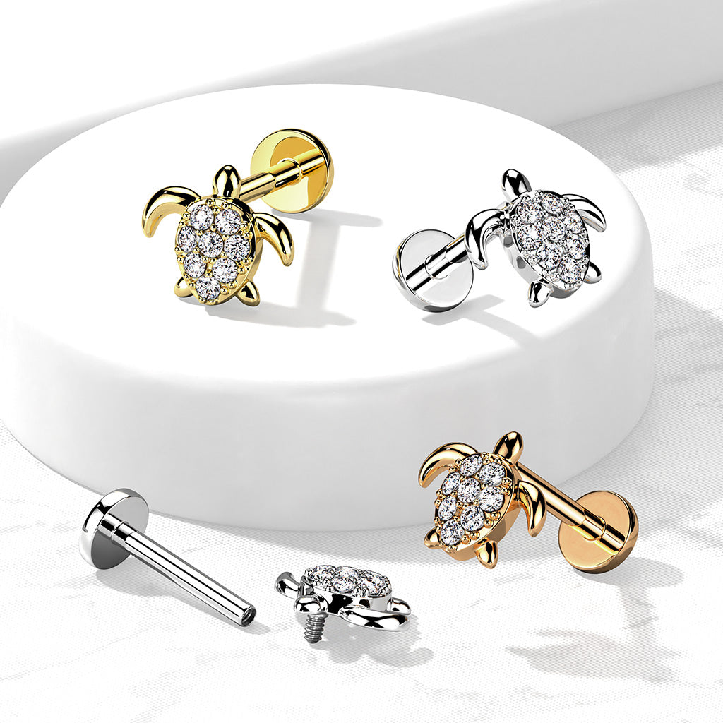 1pc CZ Paved Turtle 16g Labret Internally Threaded Steel Monroe Tragus Helix
