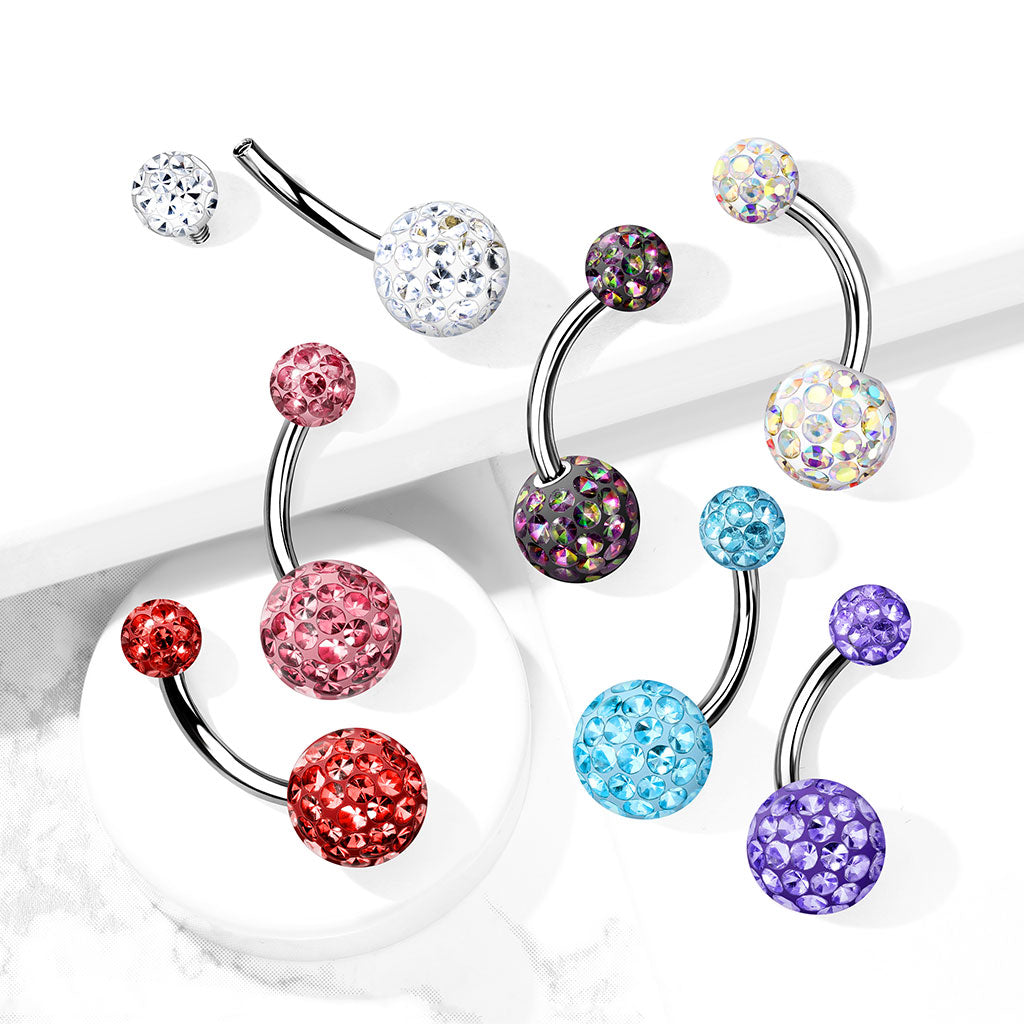 Epoxy Coated Crystal Paved Balls Belly Ring - Select desired color from the drop down menu above