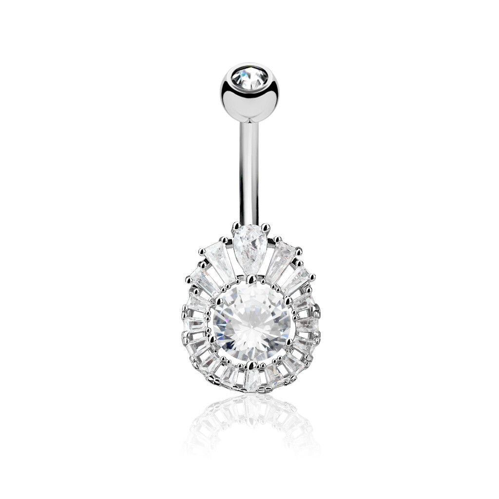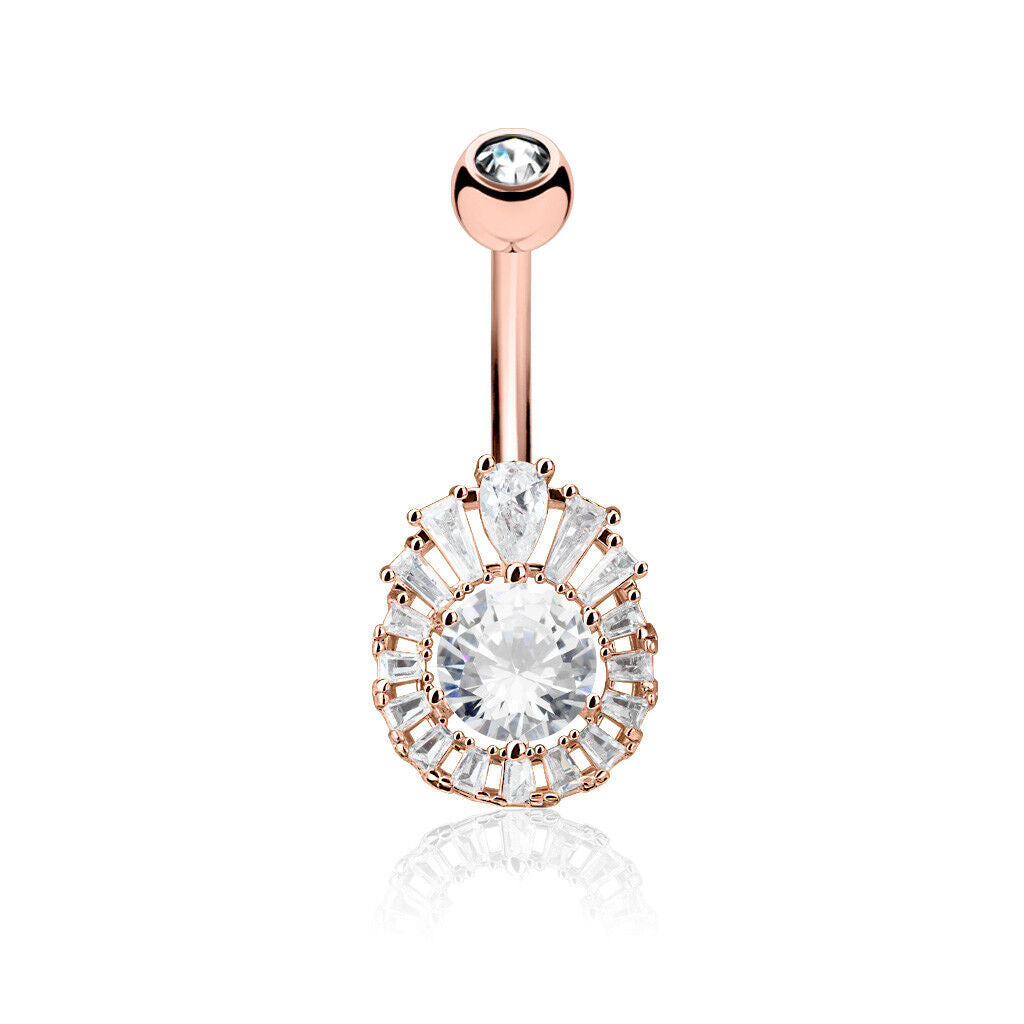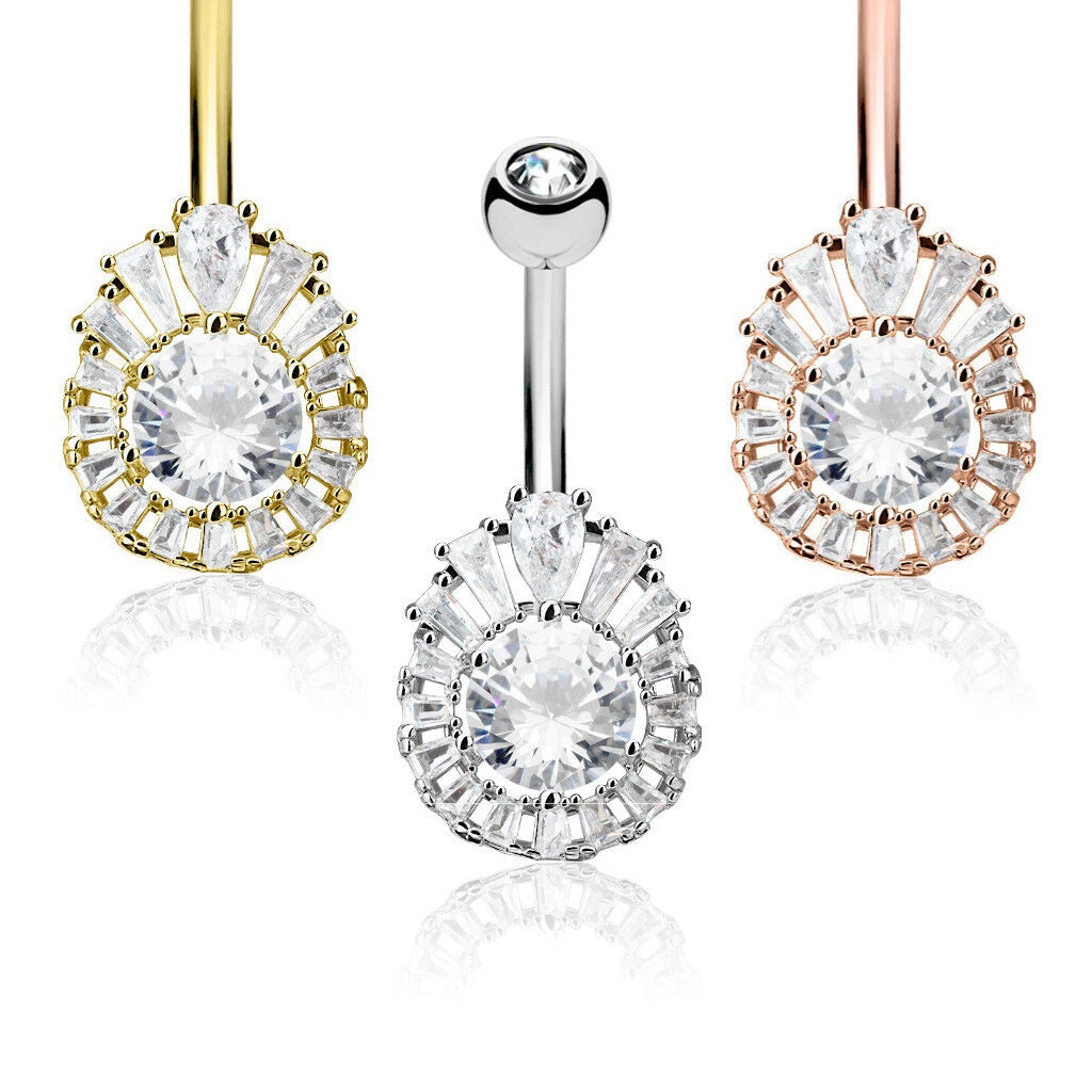 1pc Princess Cut CZ Gem Round Gem Centered Surgical Steel Belly Ring Navel Naval