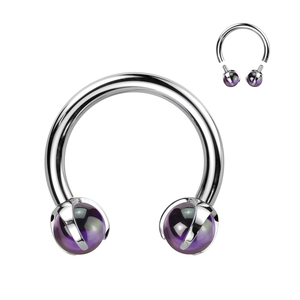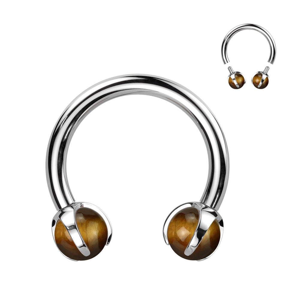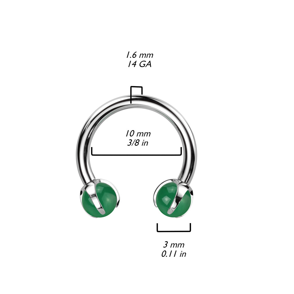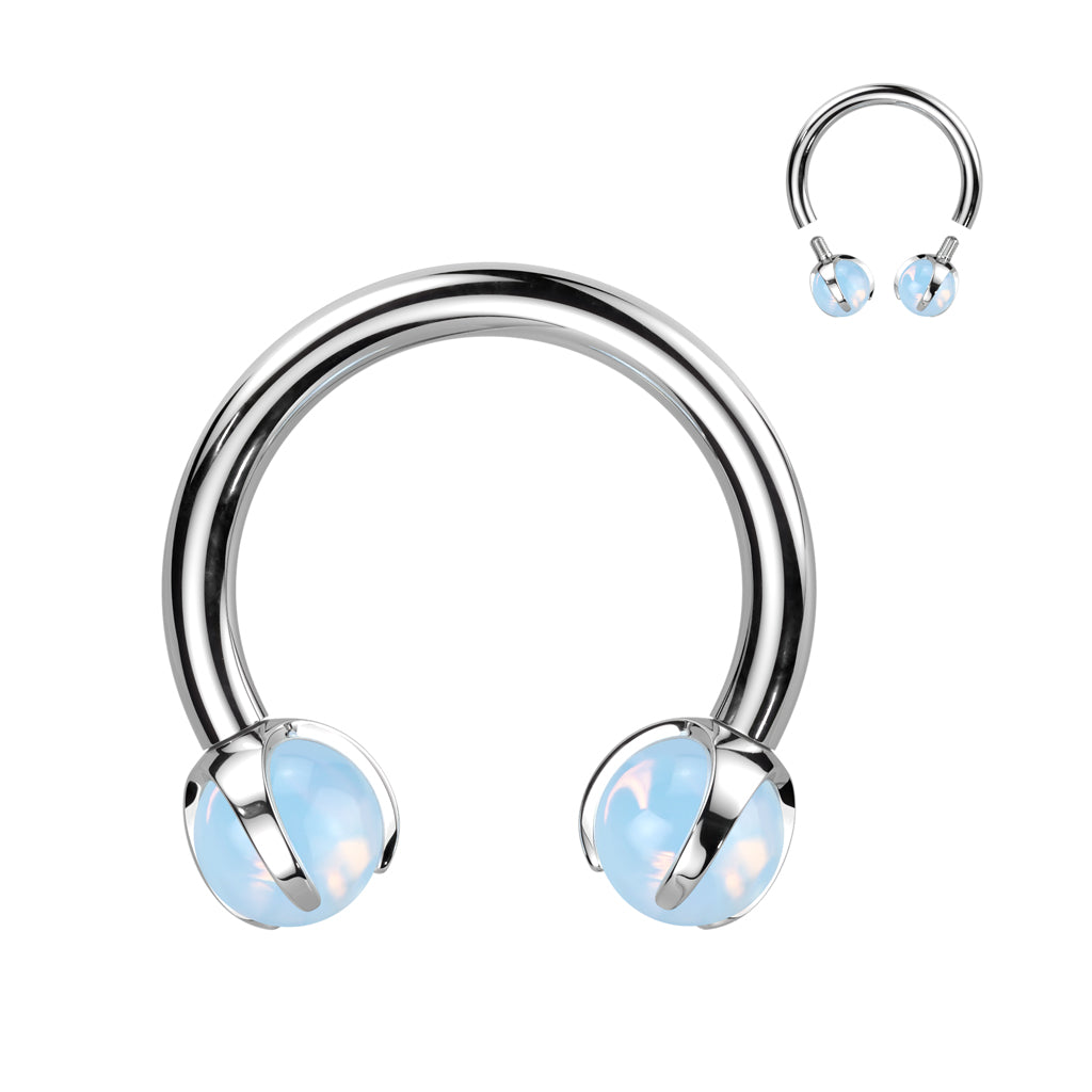1pc Solid Titanium Stone Circular Barbell Horseshoe Lip Ear Septum Ring 16g 3/8"
