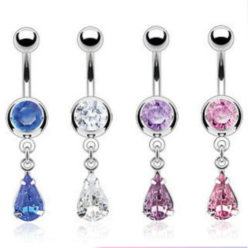 1pc Teardrop CZ Gem Dangle Belly Ring Navel Naval Clear, Pink, Blue, Light Purple