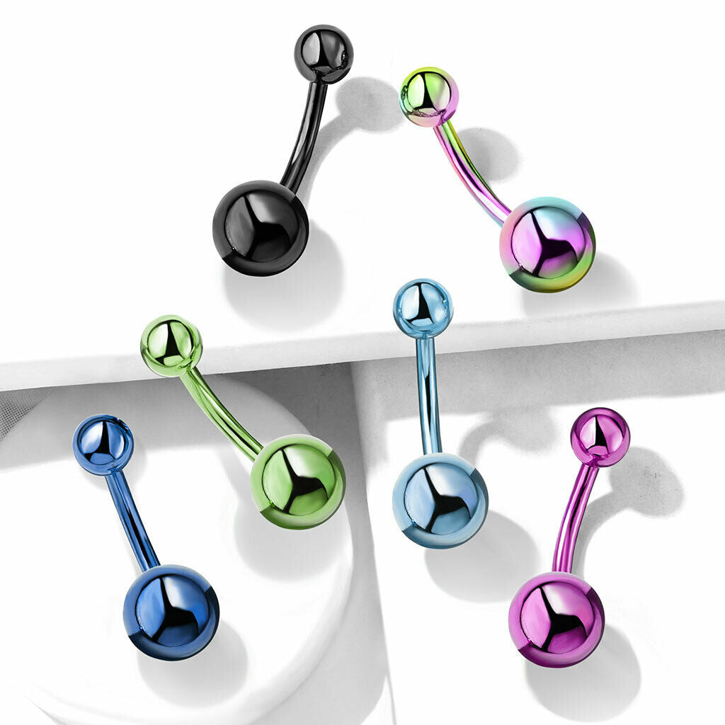 1pc Titanium Ion Plated Simple Double Ball Belly Ring Pierced Navel Naval