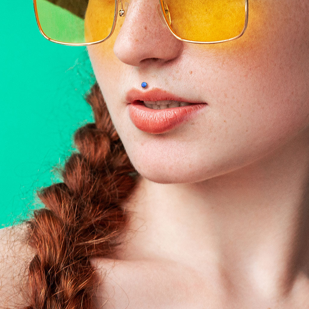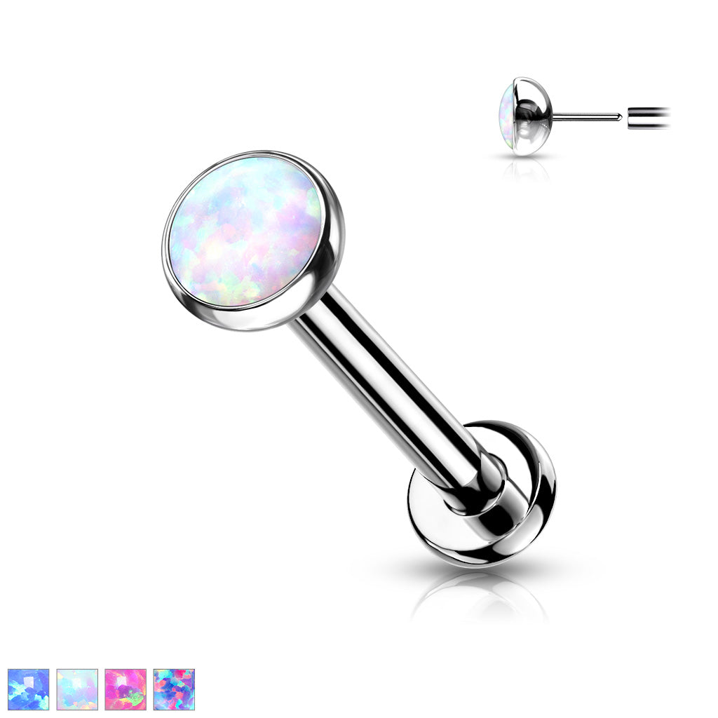 One Push-In Opal Dome Labret Stud - select desired color, gauge, wearable length and ball diameter from the drop down menus