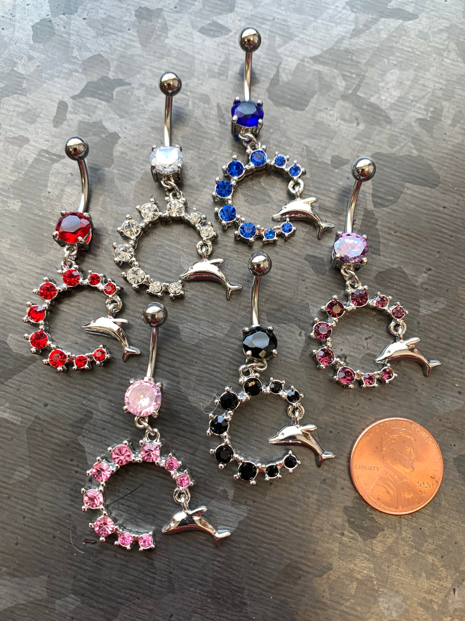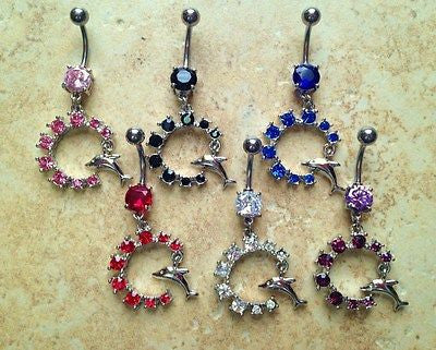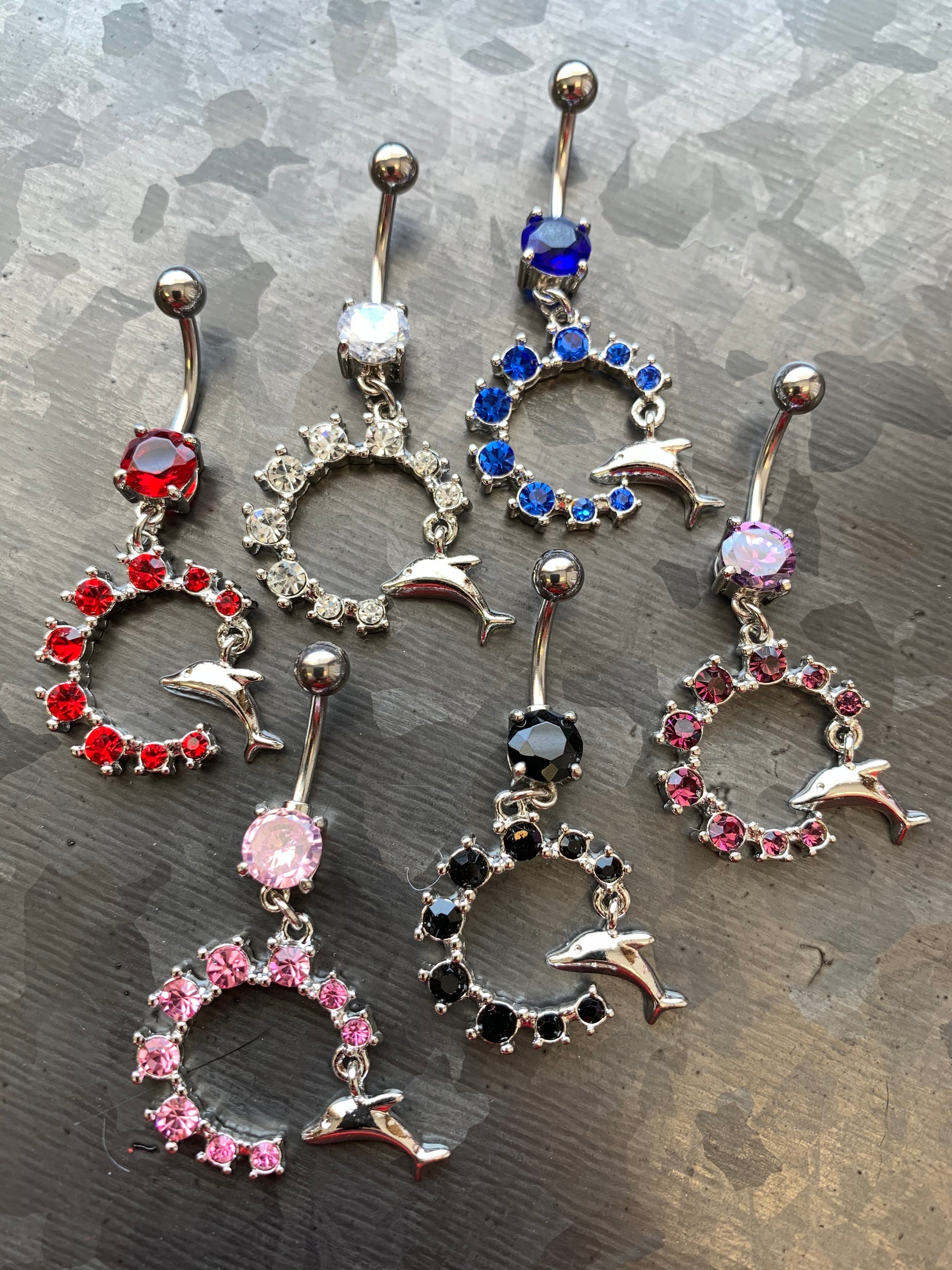 6pcs Dolphin Gem Dangle Navel Rings Belly Naval