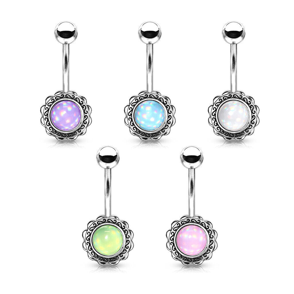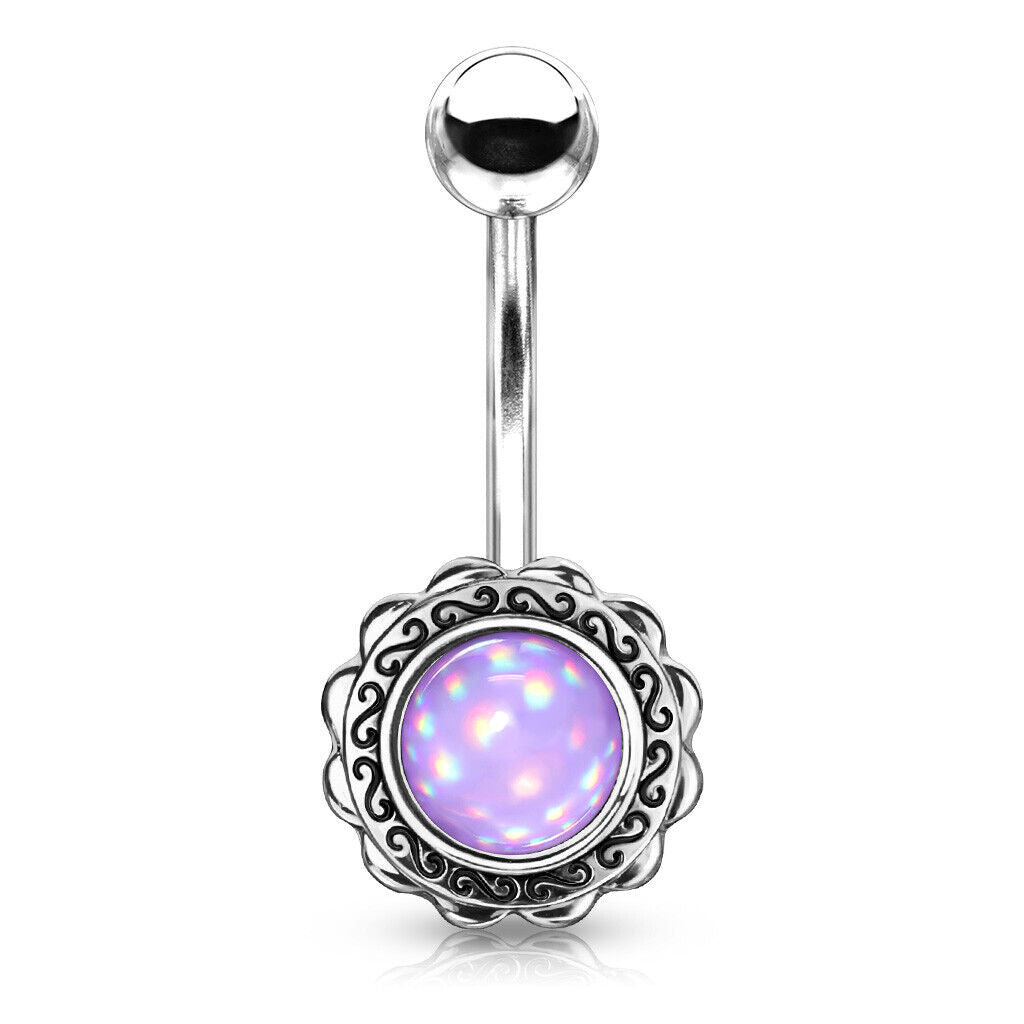 Filigree Flower Illuminating Stone Belly Ring Naval Piercing Navel