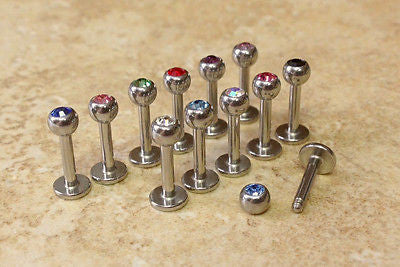 Select gauge/length from the drop-down menu. Lot includes 1pc each of clear, red, pink, light pink, purple, light purple, dark blue, light blue, aqua, black, aurora borealis and green. All sizes have a 3mm ball with the exception of 14g 5/16" mixed color which has a 4mm ball, and 14g 3/8" mixed color which has a 5mm ball.