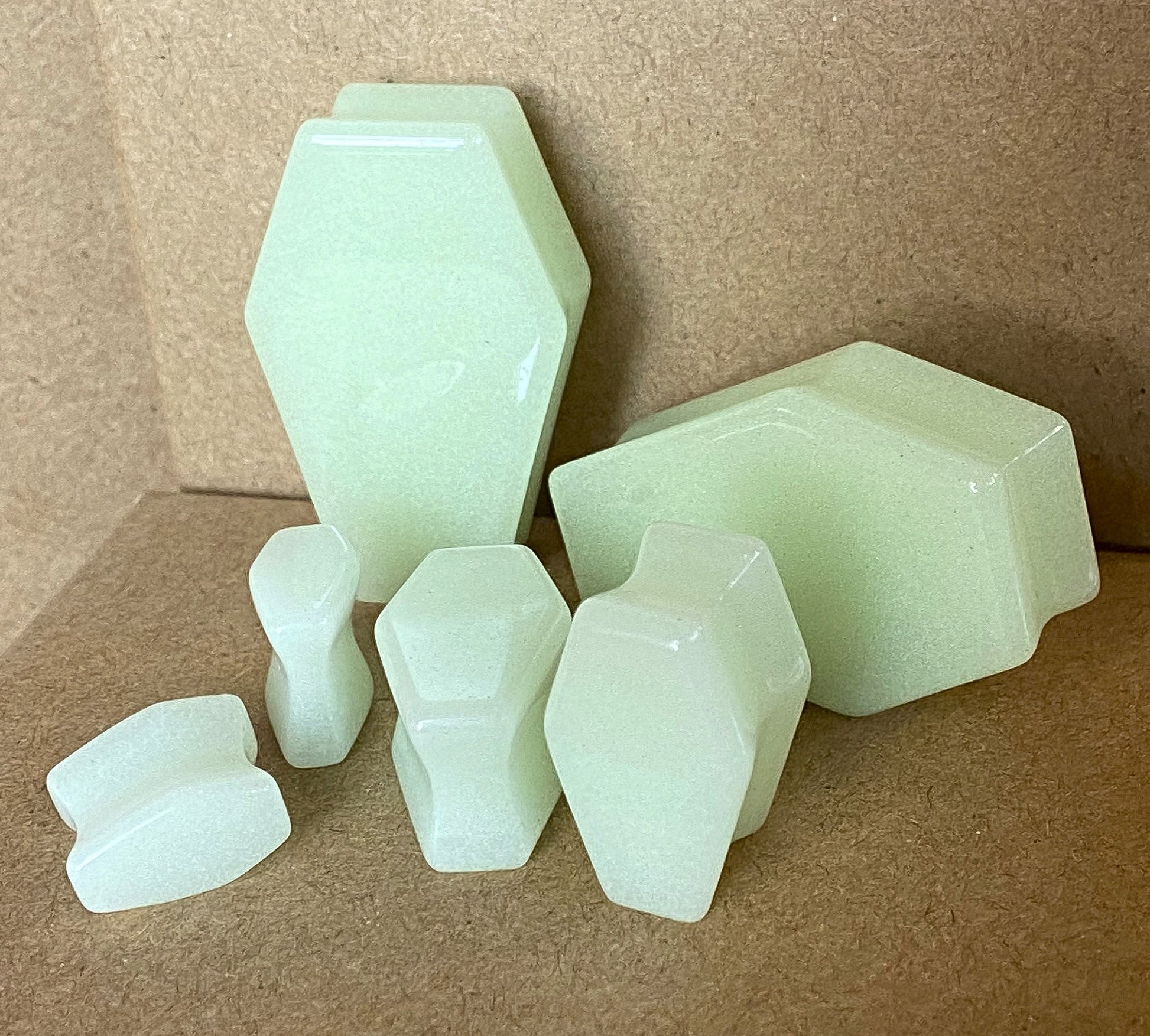 PAIR Glow in the Dark Stone Coffin Shaped Double Flare Plugs Gauges
