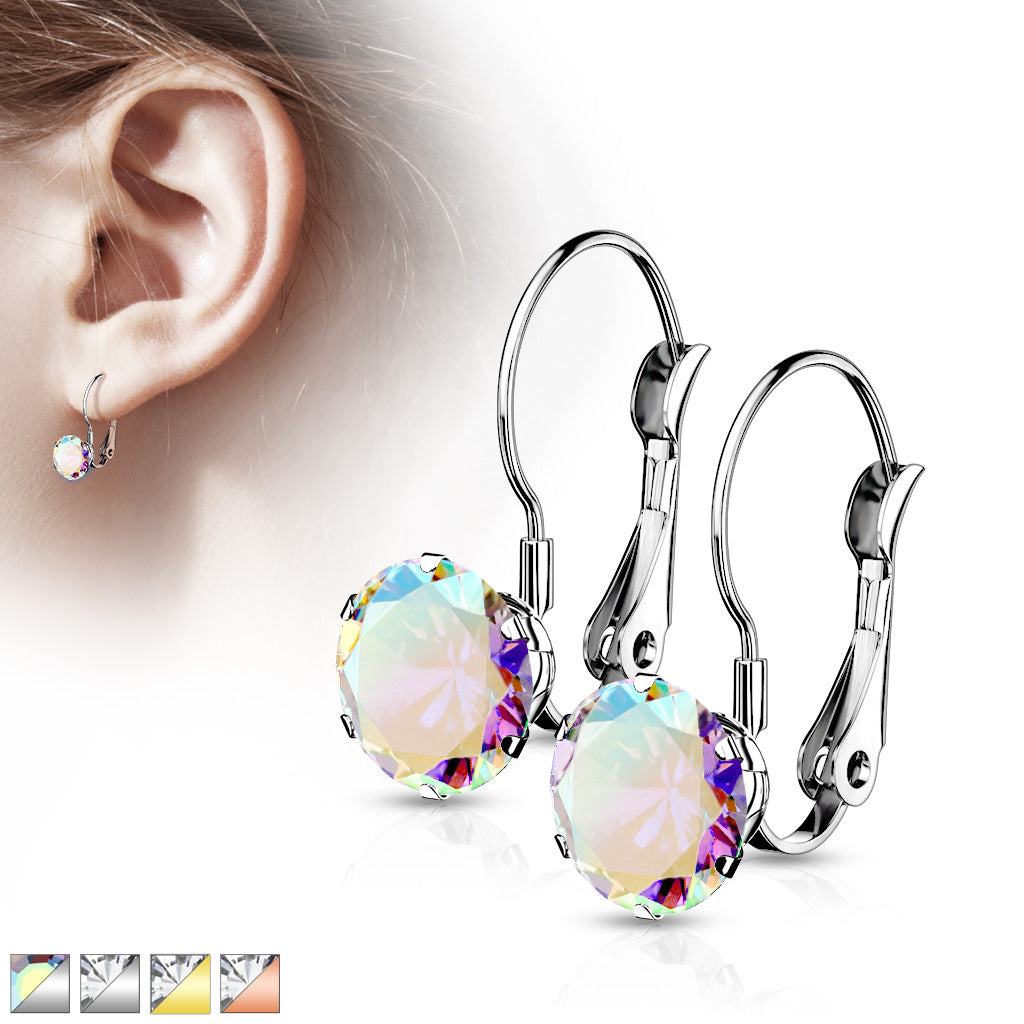 PAIR of Round CZ Gem Earrings w/ Lever Back 20g 316L Stainless Steel