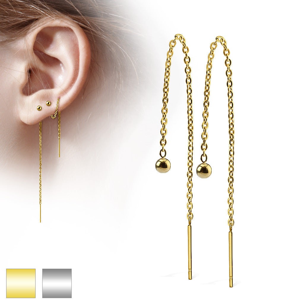 PAIR of Single Chain Free Falling Bar 20g Earrings