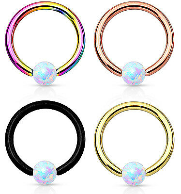 PAIR Synthetic Opal Ball Ion Plated Captive Bead Rings Body Jewelry 16g 5/16"