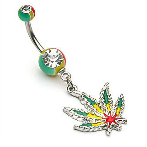 Rasta Pot Leaf Jamaican Gem Belly Ring Navel