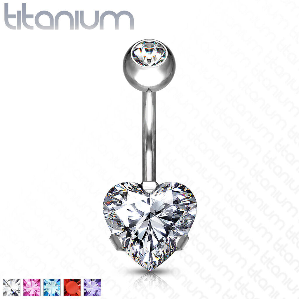 Solid Implant Grade Titanium Heart Gem Belly Button Ring 14g Navel Naval
