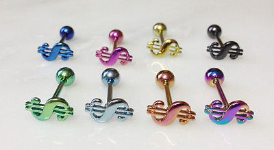 8pcs Titanium $ Dollar Sign Tongue Rings Money