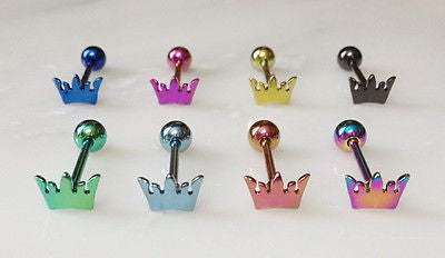 8pcs Titanium Anodized Crown Tongue Rings