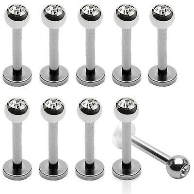 10pcs Clear CZ Gem 316L Surgical Steel Labrets