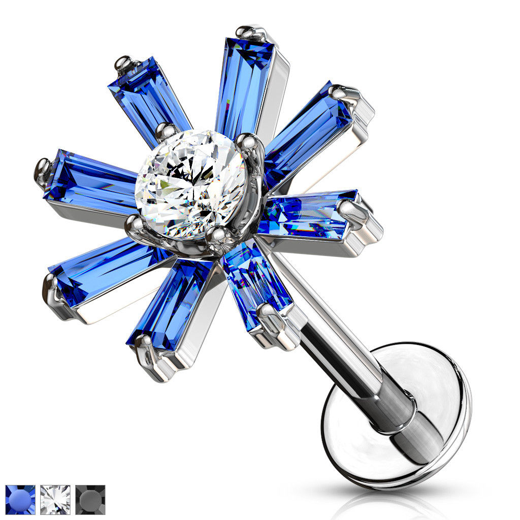 1pc Baguette Crystal Petals Labret 16g Internally Threaded Steel Helix Tragus