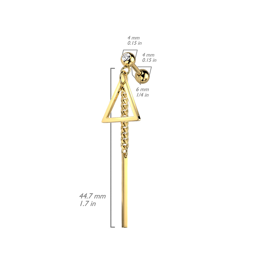 1pc Bar Chain Triangle Tragus Stud Helix Ear Cartilage Ring 316L Surgical Steel