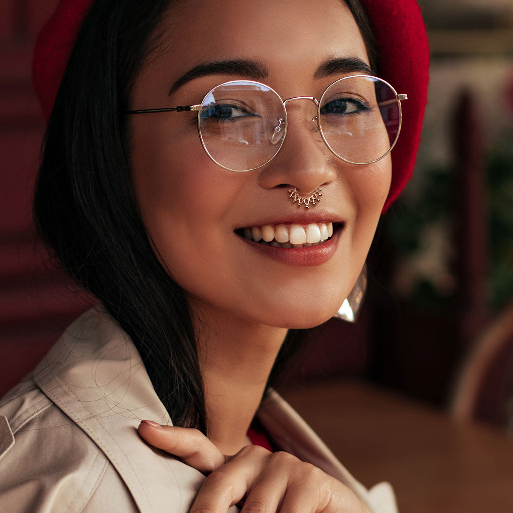 1pc Beaded Crown Hinged Segment Ring 16g Septum Clicker Surgical Steel