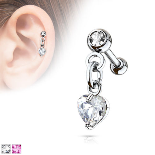 1pc Crystal Heart Dangle Tragus Ring 16g 1/4"