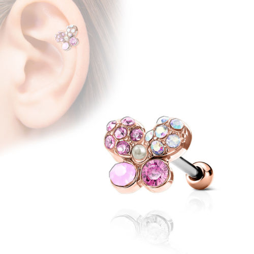 1pc Crystal Paved Butterfly Tragus Ring 16g 1/4"