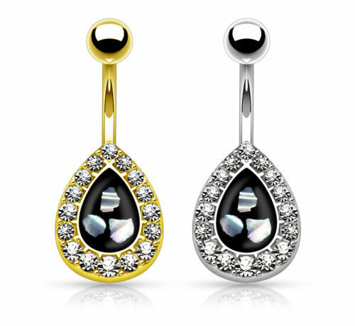 1pc Crystal Paved Tear Drop w/ Mother of Pearl Inlay Belly Pierced Navel Ring