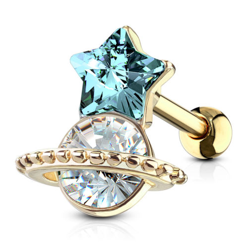 1pc Crystal Star & Saturn Planet Tragus Ring 16g 1/4"