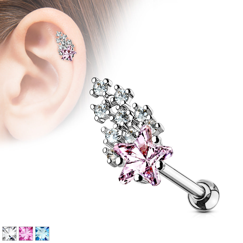 1pc CZ Clustered Shooting Star Tragus Helix Cartilage Ring