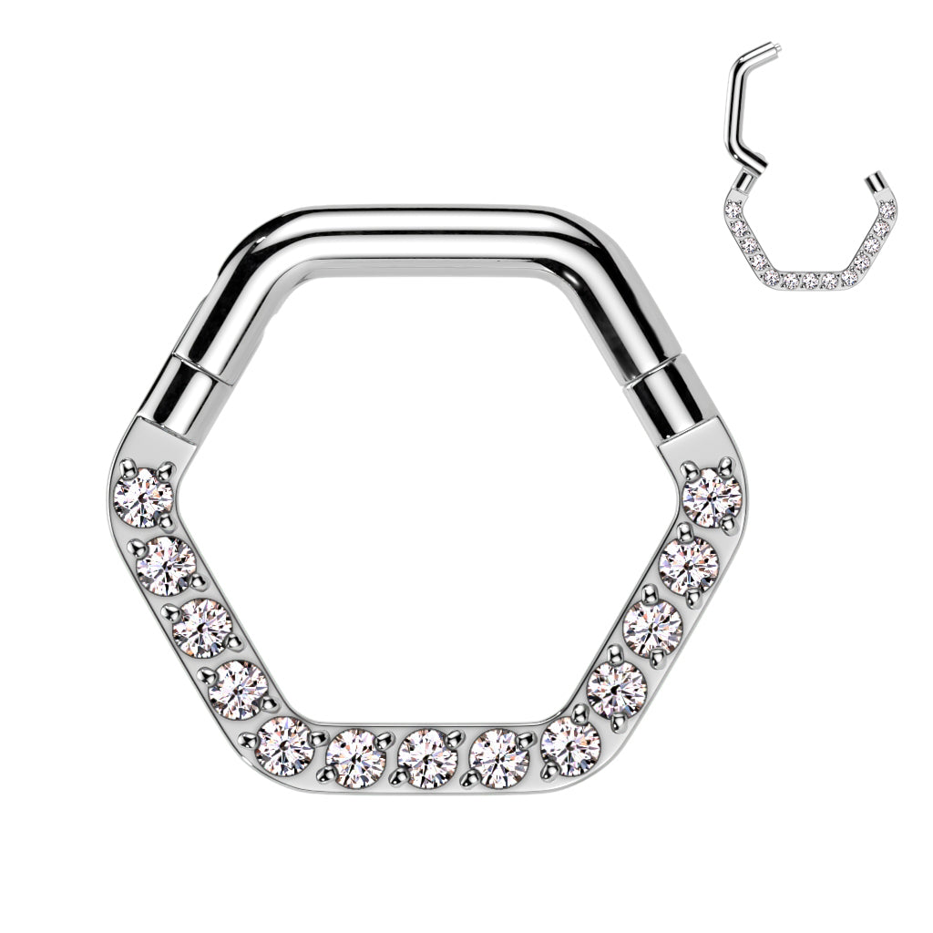 1pc CZ Gem Hexagon Hinged Segment Ring 16g Septum Clicker Helix Orbital Daith