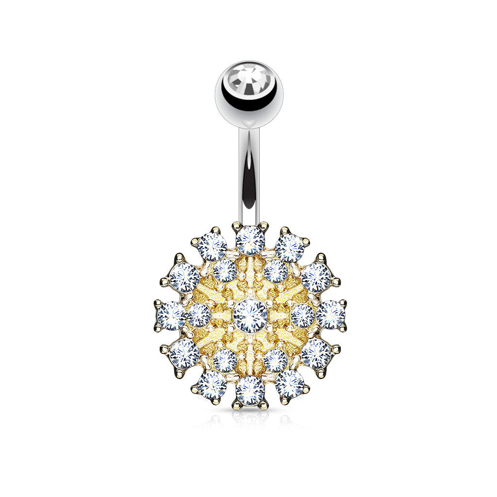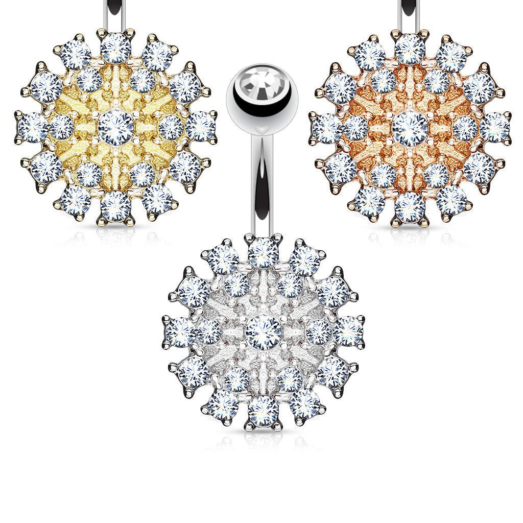 1pc CZ Gem Paved Round Shield 316L Surgical Steel Belly Ring Navel Naval