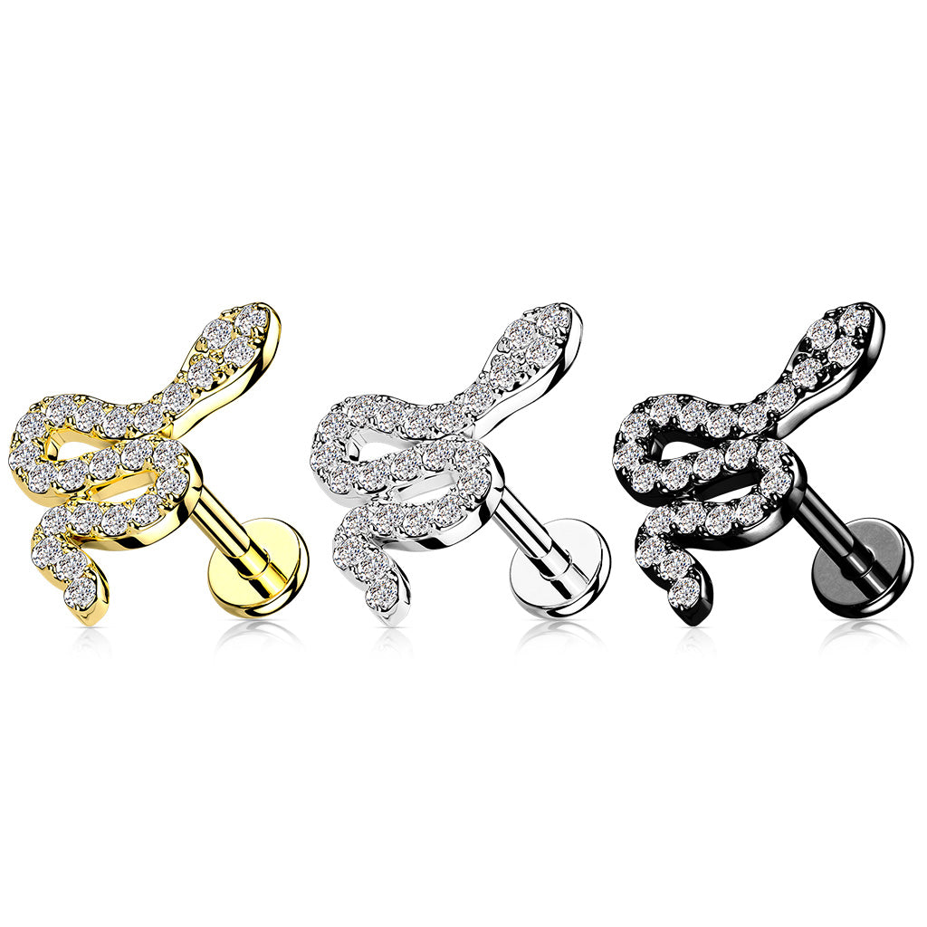 1pc CZ Paved Snake 16g Labret Internally Threaded Steel Monroe Tragus Helix