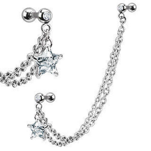 1pc Double Chain Linked Gemmed Star Tragus Ring