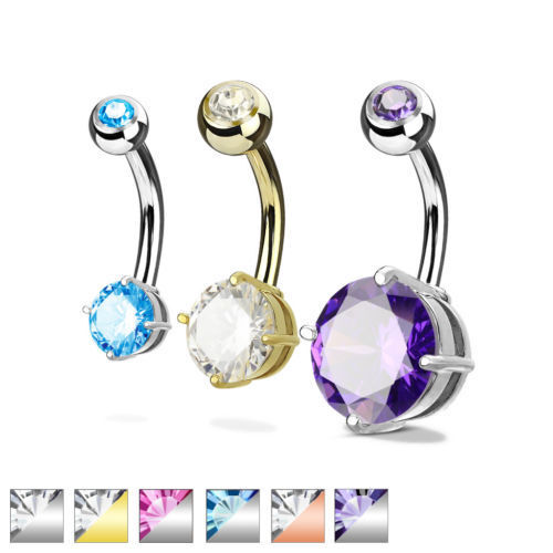 1pc Double Gemmed Prong Set CZ Solitaire Belly Ring - Select desired size and color from the drop down menu above