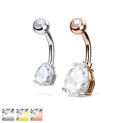 1pc Double Gemmed Prong Set CZ Teardrop Belly Ring - Select desired size and color from the drop down menu above